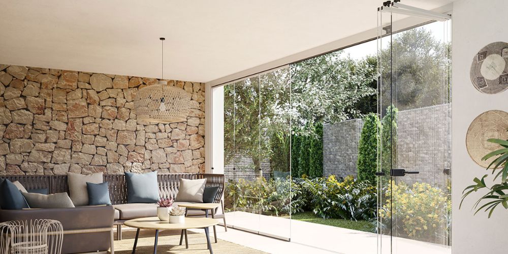 Glass curtains are tempered glass panels that slide and fold laterally, without vertical frames, allowing a completely clean view. When closed, they insulate from cold, wind or rain; when open, they allow full ventilation.